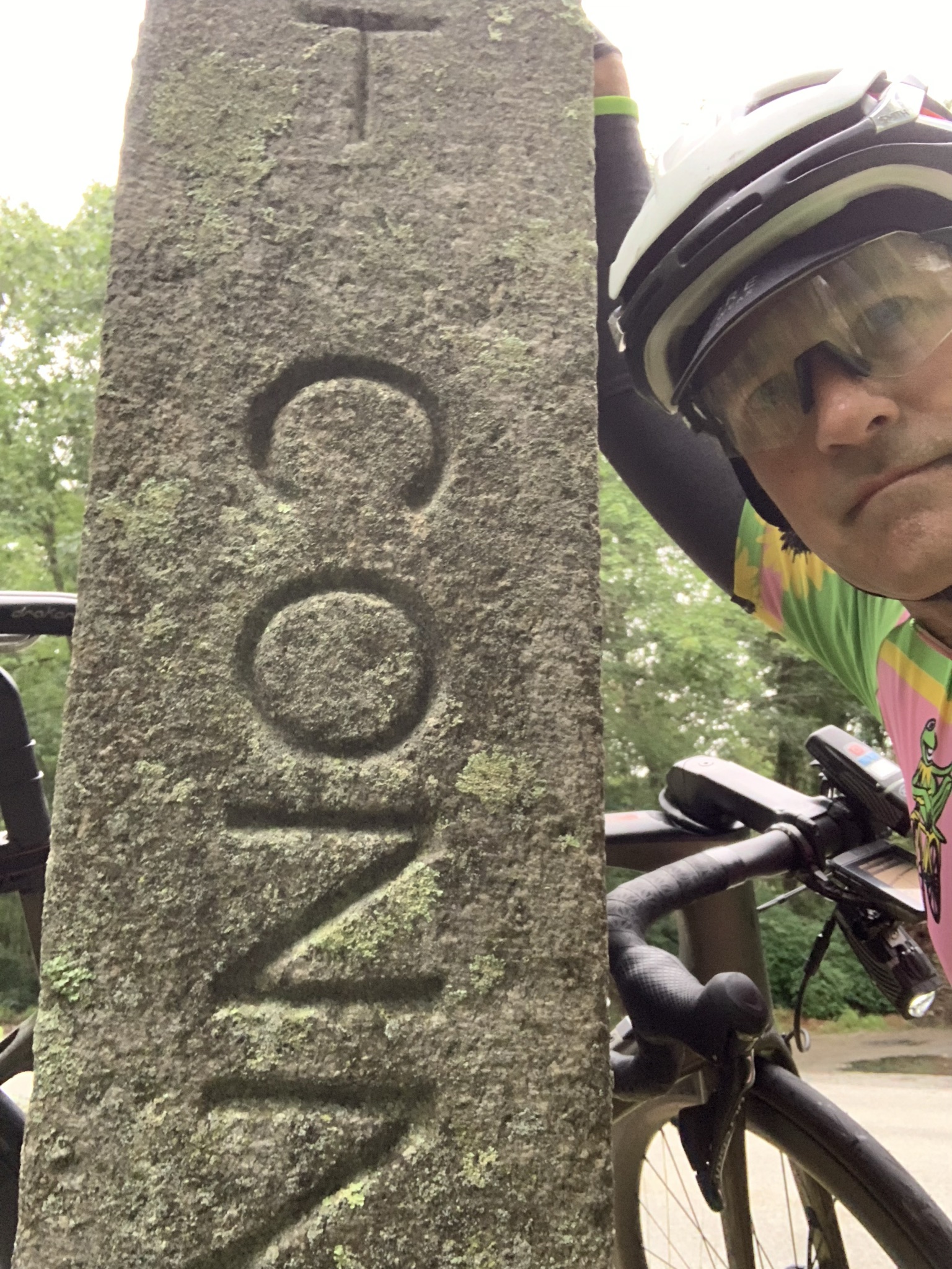 I figure that frogs like the water, so I put on the 2021 Team Kermit kit for the ride. I quickly cobbled together a route. In looking at the map it looks like I missed the western border of Rhode Island. So it wasn’t a pure Pan RI ride. I’m going to let riding in the rain give me credit for that extra little bit.